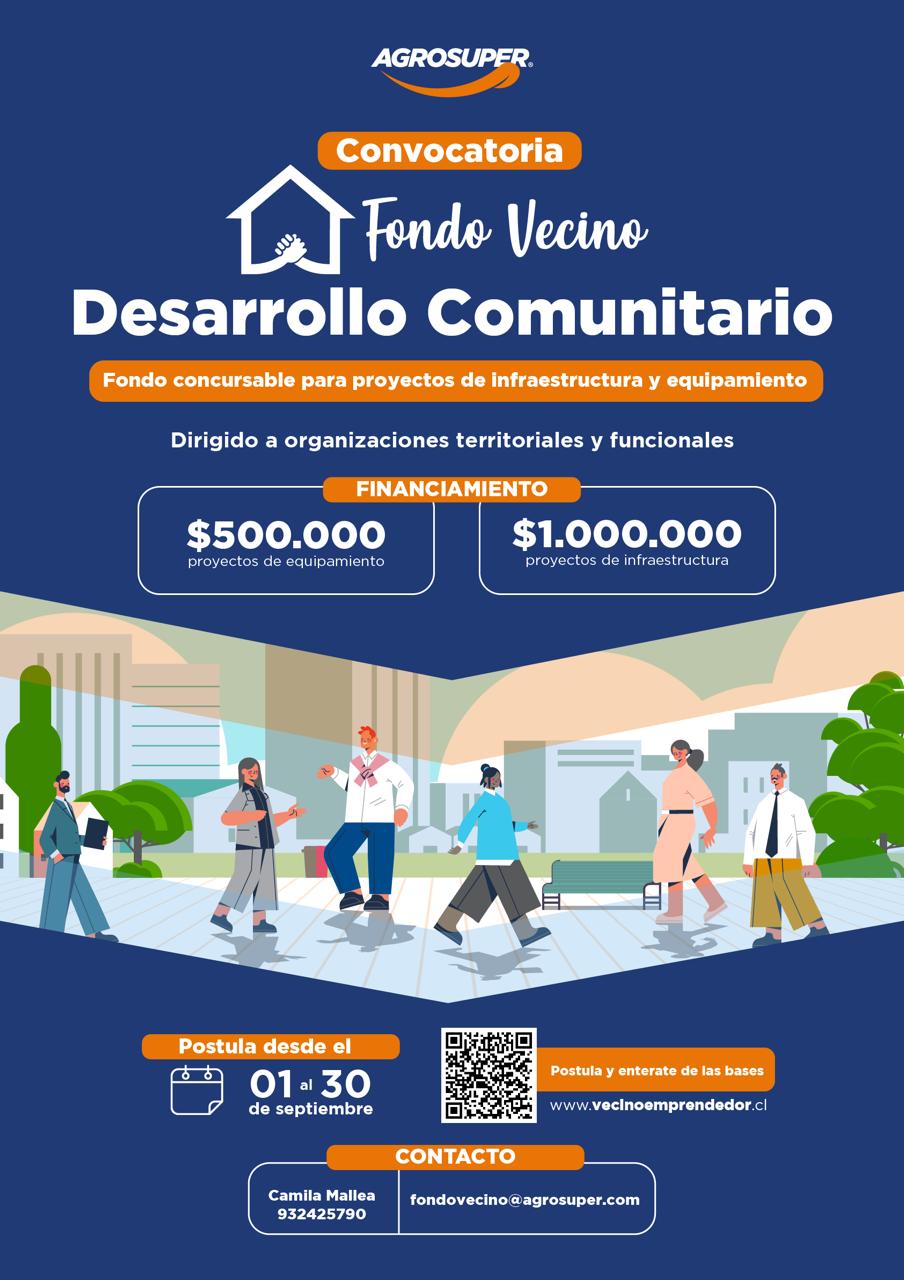 Ya comenzó un nuevo proceso de postulación al Fondo Vecino Agrosuper 2025, iniciativa que busca apoyar la ejecución de proyectos dirigidos a mejorar las condiciones de funcionamiento de organizaciones territoriales y funcionales. En esta nueva edición, el programa está enfocado en financiar proyectos de equipamiento e infraestructura que contribuyan al desarrollo comunitario.