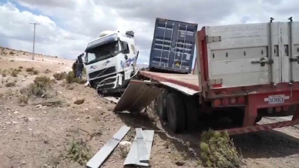 Un accidente de tránsito ocurrió la tarde de este martes en la Ruta CH 15, en Iquique. Un conductor boliviano volcó su camión en el camino tras realizar una fallida maniobra de adelantamiento.