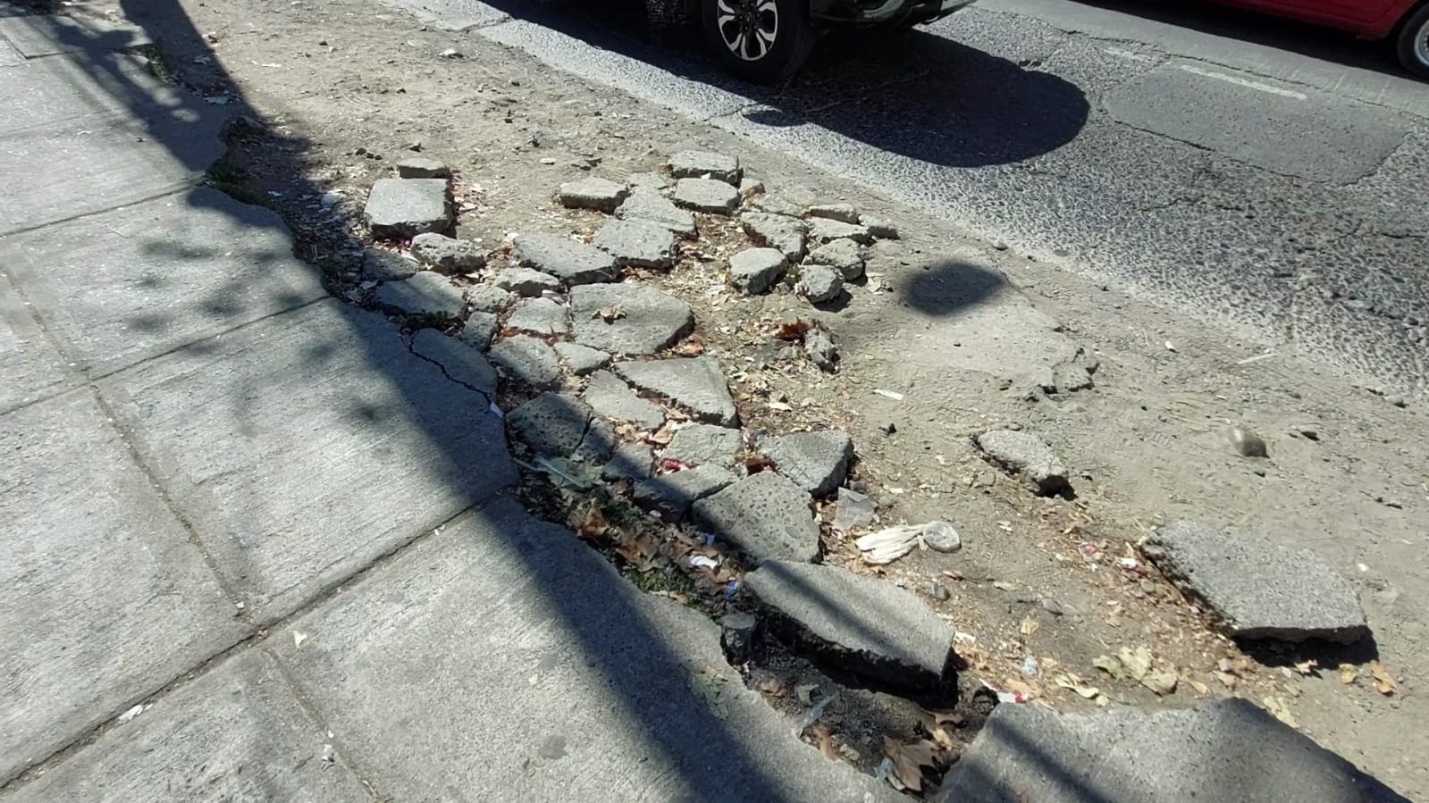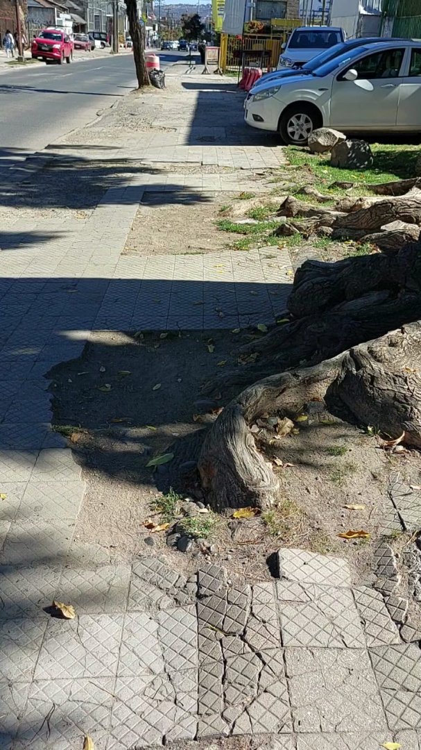 “Las veredas están horriblemente destruidas, sobre todo en el centro. En la 1 Sur y en la 1 Norte, por ejemplo, da miedo. Hay que tener mucho cuidado; yo he visto caer personas mayores que han quedado muy mal”, señaló Martina Hernández, presidenta de la Junta de Vecinos El Tabaco, donde un proyecto de reparación de aceras permanece inconcluso desde hace tres años.