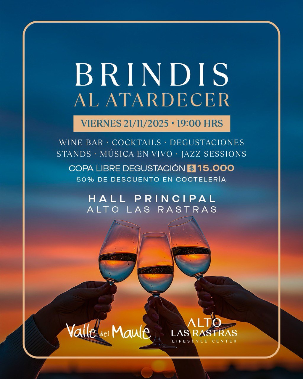 La invitación es abierta a toda la comunidad. La cita es el viernes 21 de noviembre, a las 19:00 horas, en el Hall Principal de Alto Las Rastras, para vivir una jornada dedicada al espumante maulino, la música y las experiencias en torno a uno de los productos más representativos de la región.