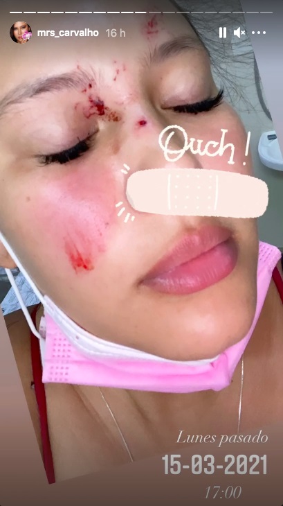 Así lo detalló la misma modelo a través de sus historias donde también mostró algunas de las lesiones que sufrió en su rostro, rodilla y tobillos. A su vez, mostró una fotografía de cómo quedó el vehículo el cual terminó con toda la parte delantera destruida.