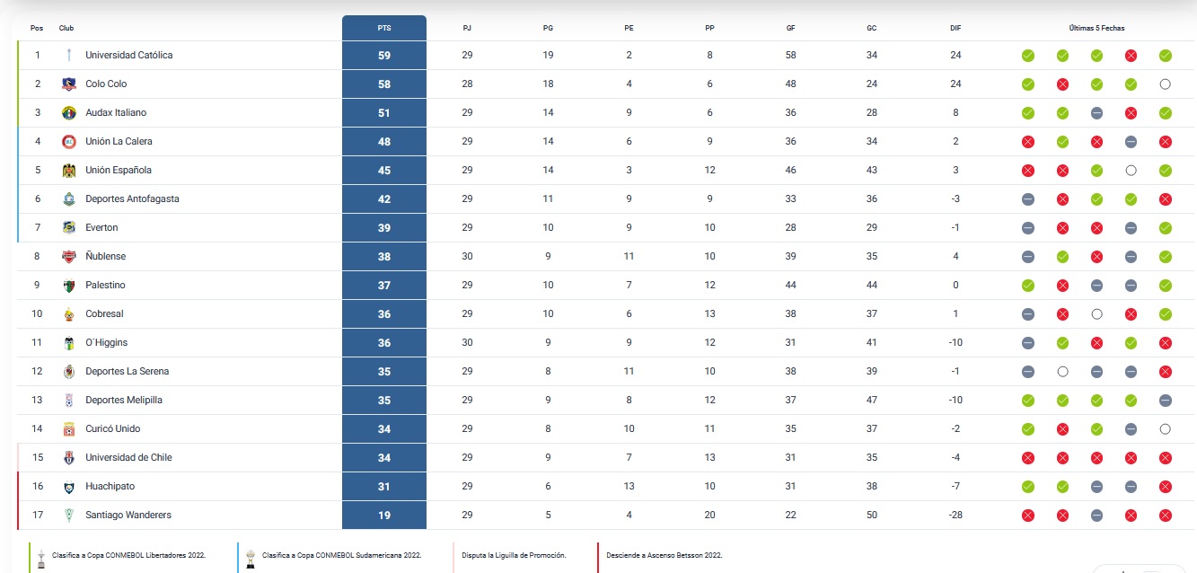 Con esto, el conjunto tortero salió del puesto de promoción y dejó a Universidad de Chile en ese lugar, por diferencia de goles.