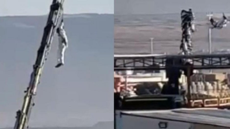 Difunden video de hombre colgando en una grúa de Calama
