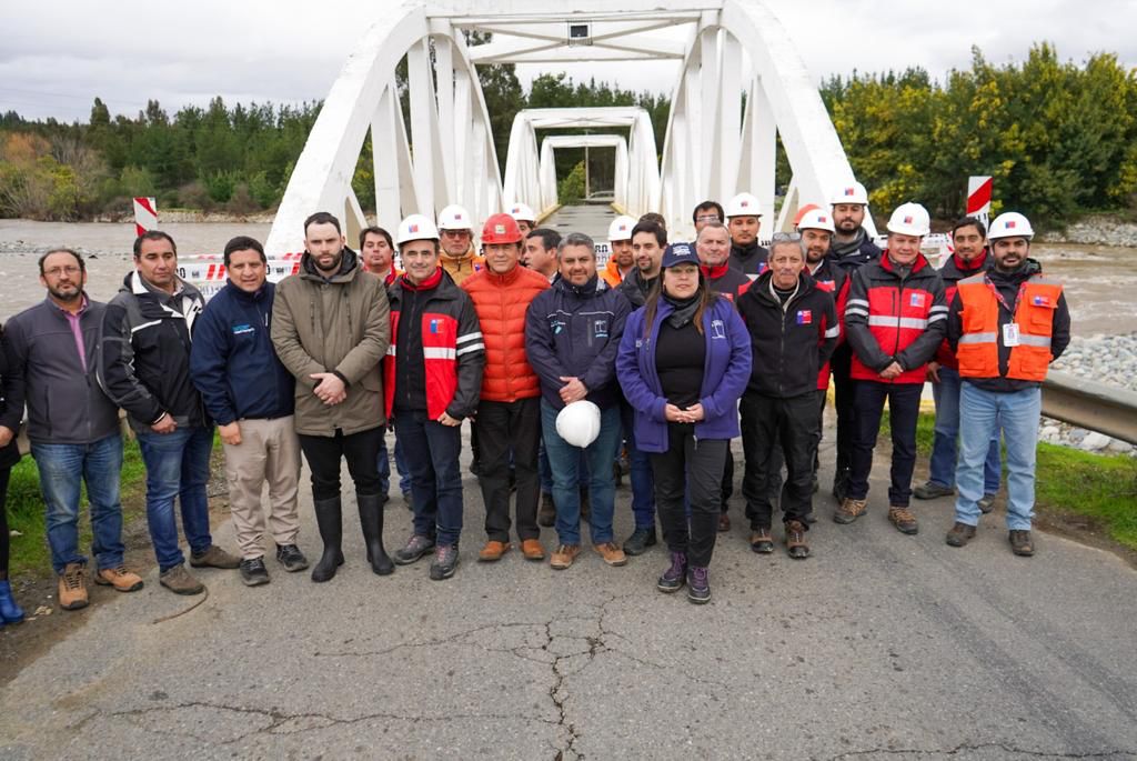Una visita inspectiva a las obras de recuperación del Puente Tres Arcos en la precordillera de Linares realizaron el delegado presidencial regional, Humberto Aqueveque Díaz; el subsecretario de Defensa, Ricardo Monter; el director nacional de Vialidad, Horacio Pfeiffer, y el seremi de Obras Públicas, Renzo Casas-Cordero, entre otras autoridades.
