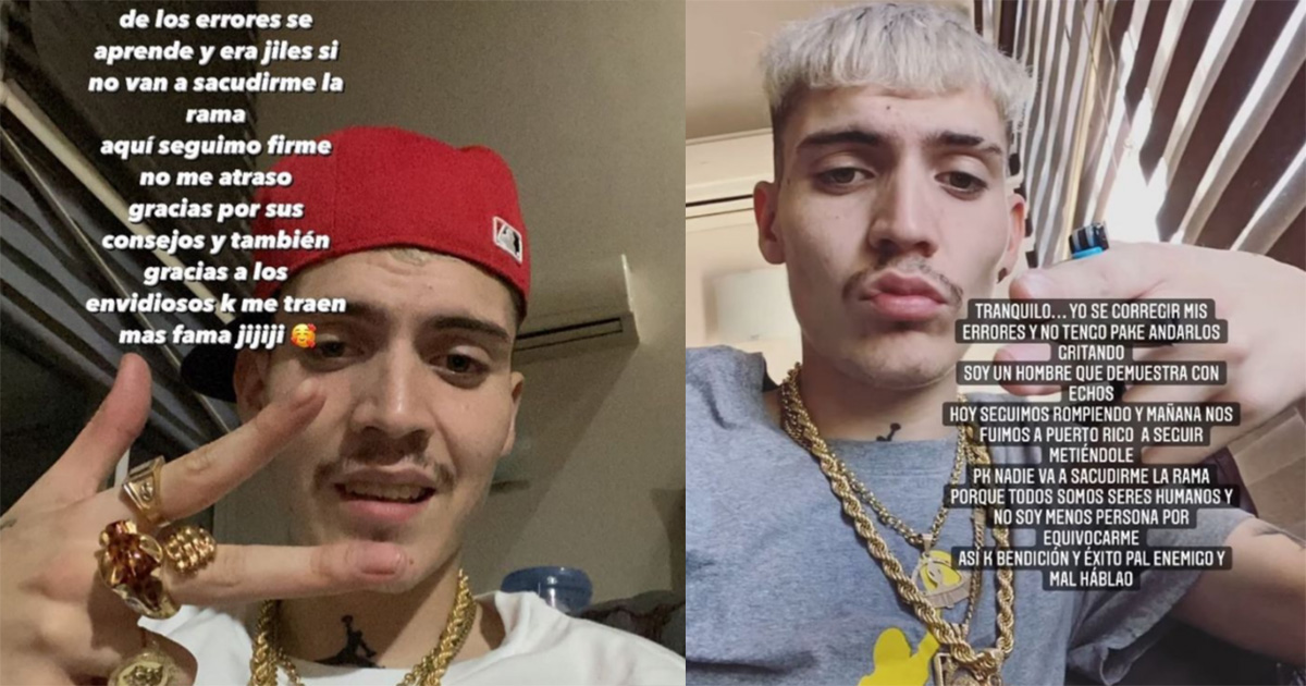 Marcianeke hizo una autocrítica a su estado, y así lo expresó por Instagram, pidiendo perdón. “Tranquilo. Yo sé corregir mis errores y no tengo para qué andarlos gritando. Soy un hombre que demuestra con hechos. Hoy seguimos rompiendo y mañana nos fuimos a Puerto Rico a seguir metiéndole porque nadie va a sacudirme la rama porque todos somos seres humanos y no soy menos persona por equivocarme”.